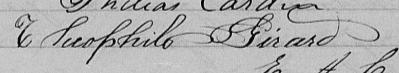 Il est aussi connu sous le nom de Jos. H. Théophile Girard 1. Il est aussi connu sous le nom de Théophile Girard 2, 3, 4, 5, 6, 7, 8. Il est aussi connu sous le nom de Joseph Hilari Théophile Girard 9. Il est baptisé Joseph Théophile Girard 10. Il signe Th. Girard 8. Il est le fils de Théophile Girard 6, 9, 10 et Marie Philomène Sénécal 9, 10. Il est le filleul de Marie Cecile Hebert 10 et Hilarion Girard 10.