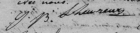 Il est aussi connu sous le nom de Jean L' Heureux 1. Il est aussi connu sous le nom de Jean Baptiste Lauriau dit Lheureux 2. Il est aussi connu sous le nom de Jean Baptiste Lheureux 3, 4, 5, 6, 7, 8, 9, 10, 11, 12, 13, 14, 15, 16, 17, 18, 19, 20, 21, 22, 23. Il est aussi connu sous le nom de Jean Baptiste L' Heureux 24, 25, 26, 27, 28. Il est aussi connu sous le nom de Jean-Baptiste L' Heureux 29, 30. Il est aussi connu sous le nom de Jean-Baptiste Lheureux 31, 32. Il est aussi connu sous le nom de Jean Baptiste L' Heureux 33. Il signe J. Baptiste Lheureux 1, 26. Il signe J. B. Lheureux 4, 34. Il signe J Bte Lheureux 10, 15, 18, 22, 35. Il signe J. B.te Lheureux 8, 13. Il signe J. Bte Lheureux 9, 16, 29, 32. Il signe J. Bte. Lheureux 11. Il signe Jean Bapt Lheureux 12. Il signe J B.te Lheureux 14. Il est aussi connu sous le nom de Jean Lheureux 35. Il est le fils de Jean L' Heureux 2, 13, 17, 19, 25, 31, 34 et Marie-Jeanne Laverdière 2.