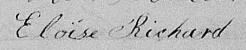 Elle est aussi connue sous le nom de Eloÿse Richard 1, 2. Elle est aussi connue sous le nom de Eloyse Richard 3, 4, 5, 6, 7. Elle est aussi connue sous le nom de Eloïse Richard 8, 9, 10, 11, 12, 13, 14, 15, 16. Elle est aussi connue sous le nom de Louise Richard 17. Elle est baptisée Marie Eloïse Richard 18. Elle est aussi connue sous le nom de Éloïse Richard 19.